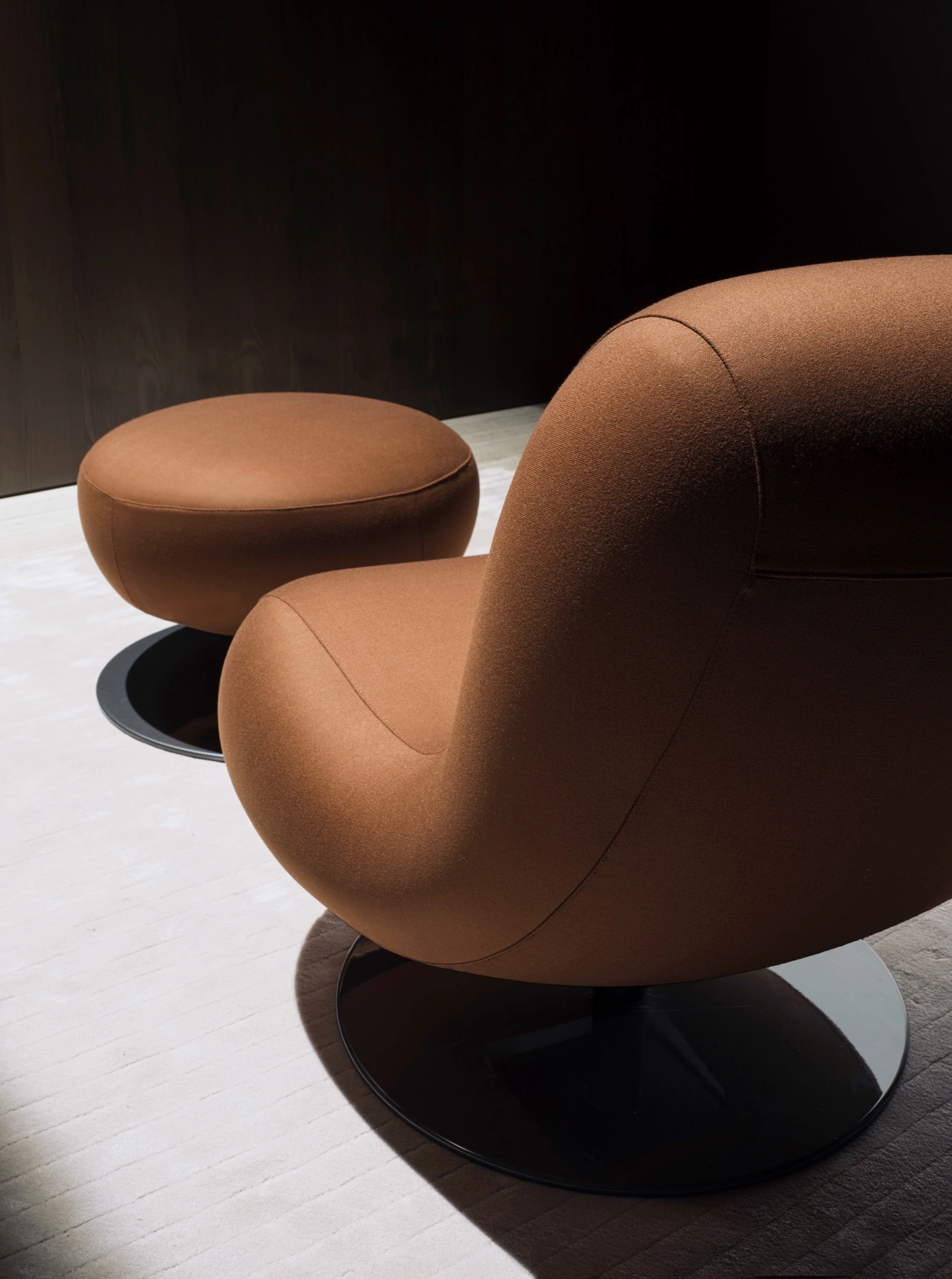 디자인의 영감은 이탈리아 토스카나의 부드러운 언덕에서 시작되었습니다. 의자의 풍성한 볼륨감과 섬세하게 나뉜 윤곽선은 마치 끝없이 이어지는 지평선의 리듬을 옮겨온 듯 보입니다. 나오토 후카사와는 “보스코는 몸이 스스로 긴장을 풀게 만드는 의자”라고 설명하며, 사용자가 마치 따뜻하고 부드러운 흙 위에 기대어 쉬는 듯한 자연스러운 몰입감을 제공하고자 했습니다.